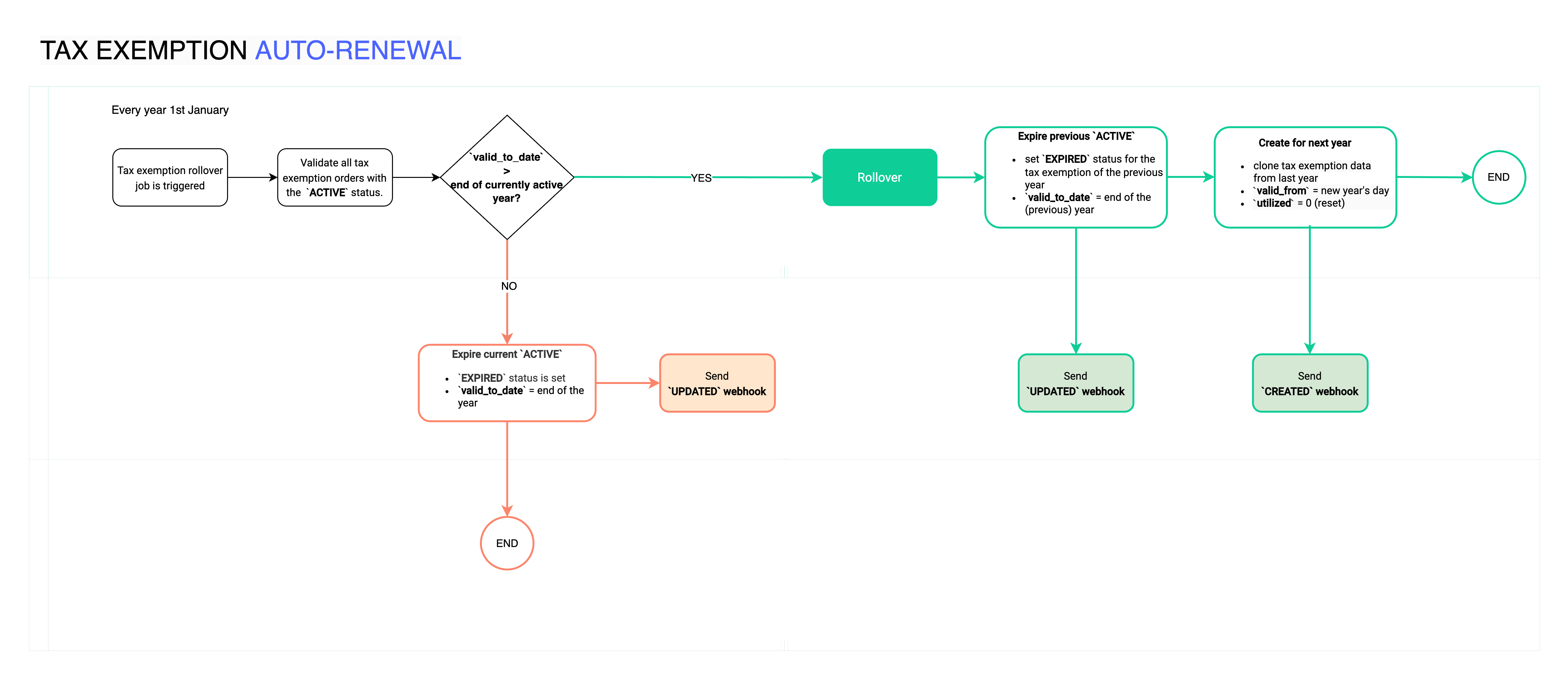 UPDATEDis being triggered.A new tax exemption order is created for the new year with: